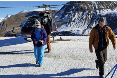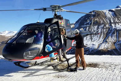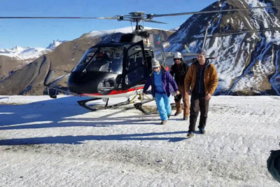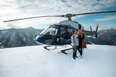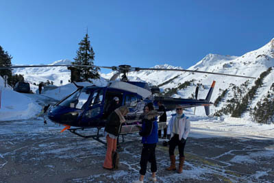 The flight takes you over snowy mountains with spectacular views. Half an hour later the hotel shuttle picks you up at the helipad to take you to your hotel.