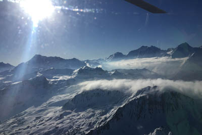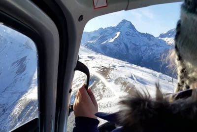 we were off to Val d'Isere. What a fantastic experience that 30 minutes was!! Flying over the snow covered French Alps.