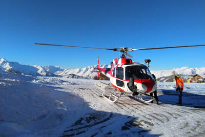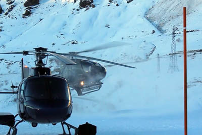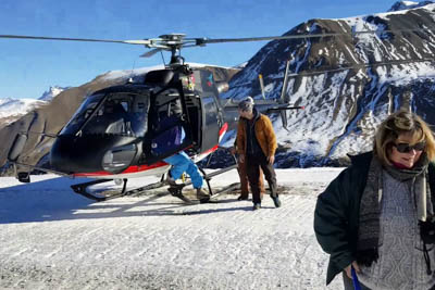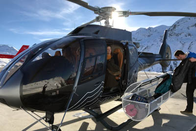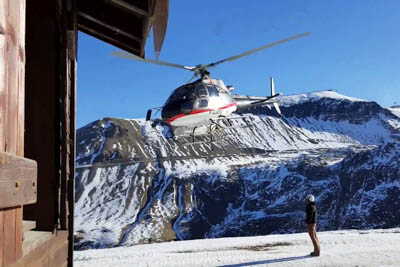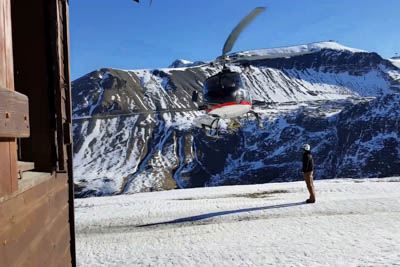 The flight takes you over snowy mountains with spectacular views. Half an hour later the hotel shuttle picks you up at the helipad to take you to your hotel.