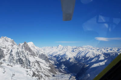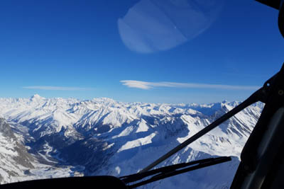we were off to Val d'Isere. What a fantastic experience that 30 minutes was!! Flying over the snow covered French Alps.